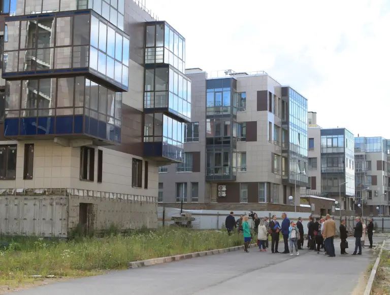 С марта 2014 года строительно-монтажные работы велись крайне низкими темпами, в июле 2015 года были приостановлены в связи с отсутствием финансирования. В связи с неисполнением застройщиком своих обязательств по передаче квартир участникам долевого строительства с апреля 2015 объекты были включены в реестр проблемных объектов Санкт-Петербурга.