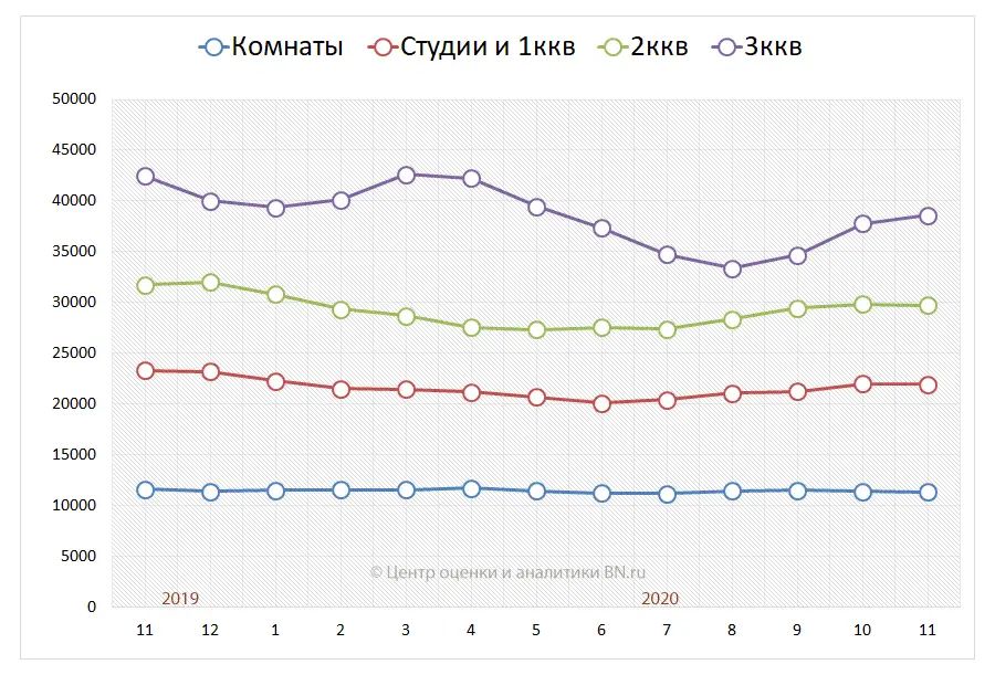 При этом стоимость аренды трехкомнатных квартир в Петербурге на конец ноября составила 38,6 тыс. рублей в месяц, что на 2,22% выше, чем в октябре.