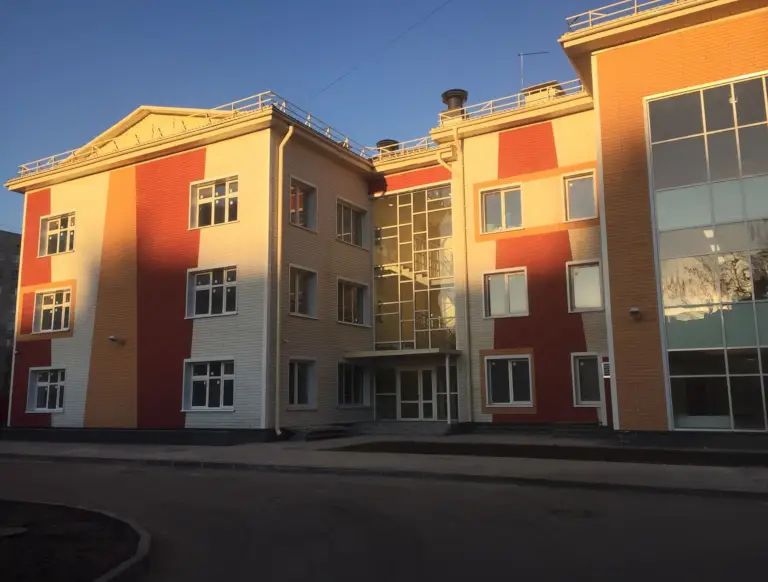 Общая площадь 3-этажного здания составляет 5,1 тыс. кв. м. В нем предусмотрены бассейн, 11 групповых комнат, столовая, зал для музыкальных занятий, помещения для кружков и развивающих занятий, кабинет логопеда, спортивный зал.