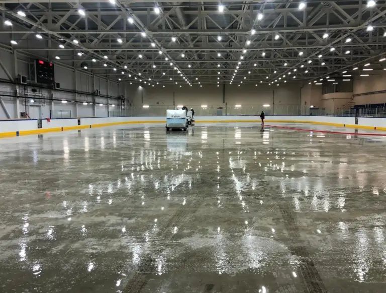 В двухэтажном здании общей площадью 6,4 тыс. кв. м расположены ледовая арена размером 30 на 60 метров и с трибуны на 250 зрителей, зал силовой подготовки, зал акробатики, зал хореографии.