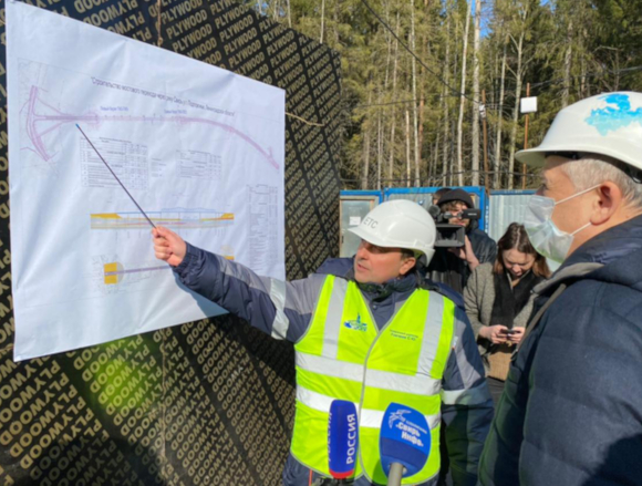 Сейчас на объекте заканчивается установка свай с обоих берегов реки, в апреле начнется надвижка пролетного строения мостового перехода. Стройка идет круглосуточно.