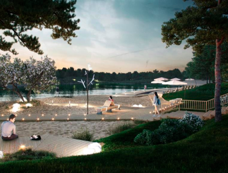 На набережной River Park разместятся тематические общественно-парковые пространства с инфраструктурой для отдыха, спорта, пляж и туристическая инфраструктура. Весной 2021 года компания начала строительство пилотного участка набережной - благоустройство защитной дамбы в рамках строительства первой жилой очереди.