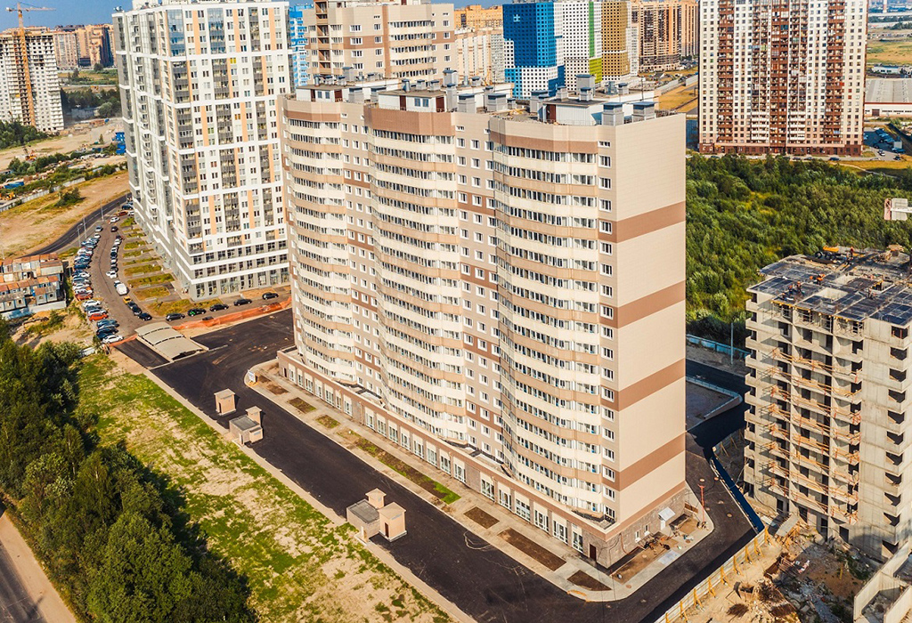 К первому этапу относятся два дома – 25-этажный на 288 квартир и 19-этажный на 486 квартир. Общая жилая площадь – 25,7 тыс. кв. м. Также построены два подземных паркинга на 167 машиномест.
