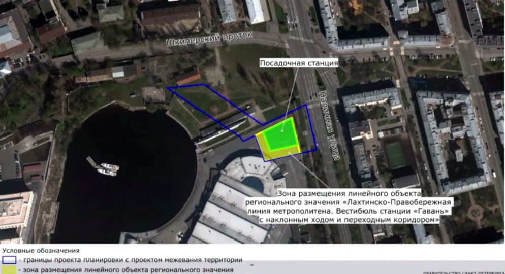 Проектом планировки территории предусмотрено размещение вестибюля станции «Гавань» с наклонным ходом и переходным коридором. Выполнение проектных работ на этом участке в соответствии с адресной инвестиционной программой предусмотрено на 2022 год и на плановый период 2023 и 2024 годов.