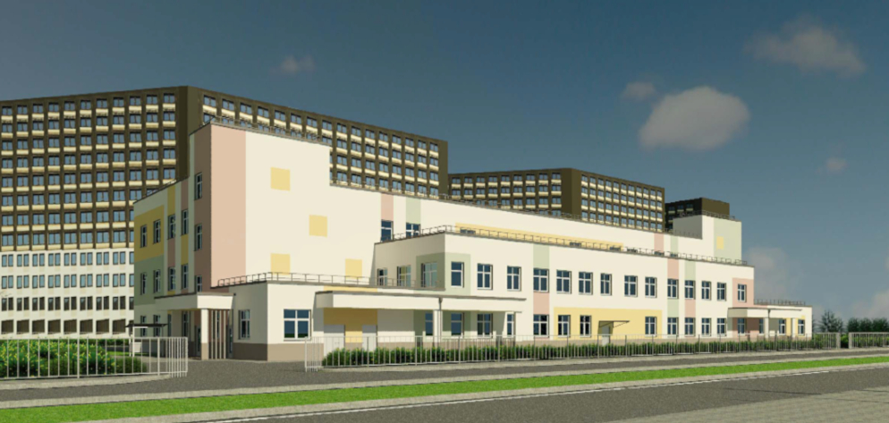 Четырехэтажное здание детского сада сможет принять 215 воспитанников. Проектной документацией предусмотрены бассейн, музыкальный и физкультурный залы, помещения для учебных занятий.