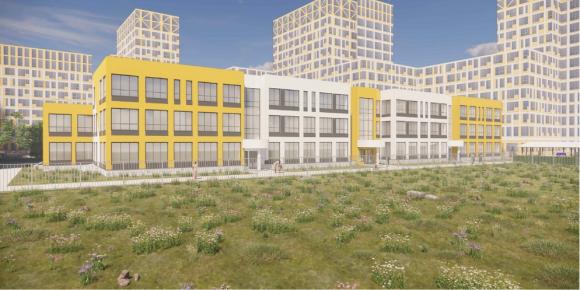 Новое учебное учреждение на улице рассчитано на 1650 школьников в 66 классах. Проект школы включает в себя спортивный блок с бассейном и залами, библиотеку, актовый зал, а также классы для кружков и дополнительного образования, включая уникальный эколого-биологический центр на 4 этаже.