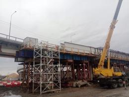 В настоящее время производится укрупнительная сборка металлоконструкций пролетного строения на путепроводе Балтийского направления.