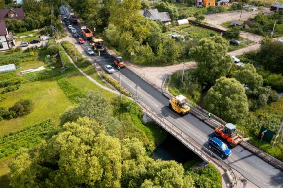 На 1,55 километровом отрезке от автодороги М-10 «Россия» до Софийской улицы дорожные работы выполнены на 85%. Специалисты устраивают дорожную конструкцию тротуаров и осуществляют монтаж бортового камня, выполняются работы по устройству постоянной схемы организации дорожного движения и подготавливают участок автодороги к укладке верхних слоев покрытия. На участке работает 50 человек и 20 единиц техники.