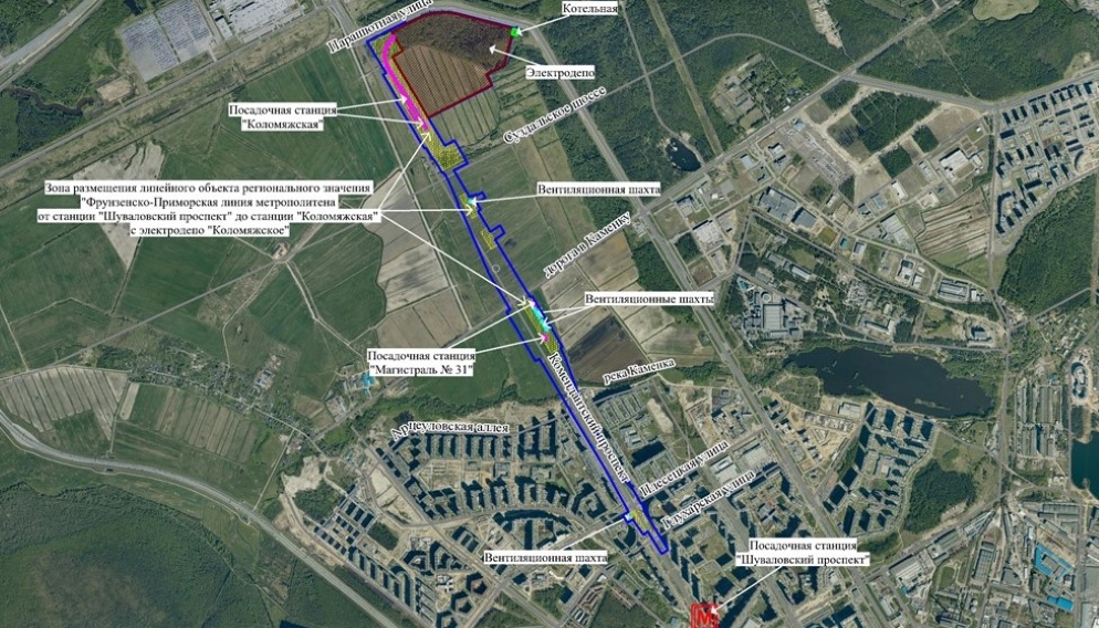 Он пройдёт в Приморском районе - от станции «Шуваловский проспект» до станции «Коломяжская» с одноимённым электродепо. Сейчас в Приморском районе активно ведётся строительство участка Невско-Василеостровской линии со станциями «Богатырская» и «Каменка». Ранее был утверждён проект планировки Фрунзенско-Приморской линии от действующей станции «Комендантский проспект» до станции «Шуваловский проспект», с которой можно будет сделать пересадку на «Каменку».